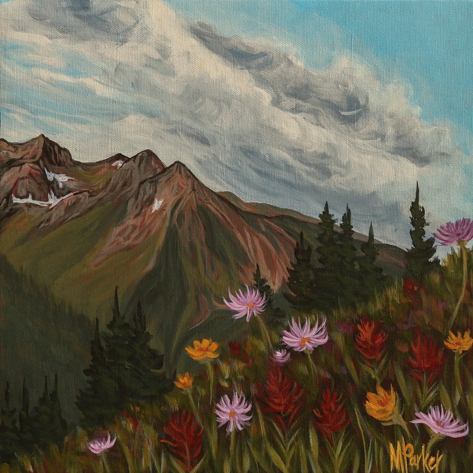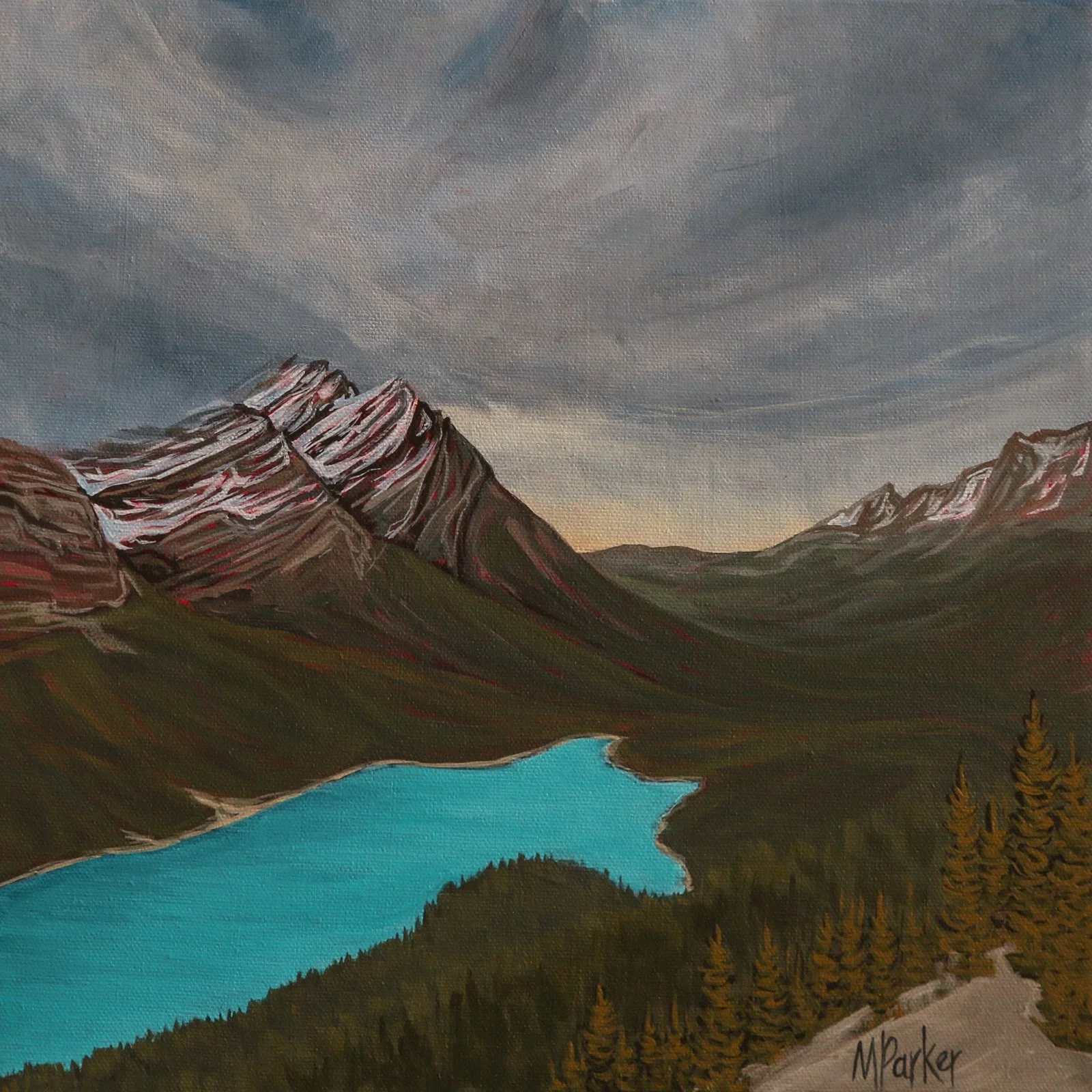 Megan Parker’s life as an artist is deeply rooted in her love of the mountains. There is something raw, humbling, and profoundly moving about stepping into the forest and standing among the peaks that surround her home in Canmore, Alberta. Through her paintings, Megan seeks to capture the boldness and beauty of these landscapes and to evoke in others the same sense of awe, wonder, and connection that continues to inspire her.